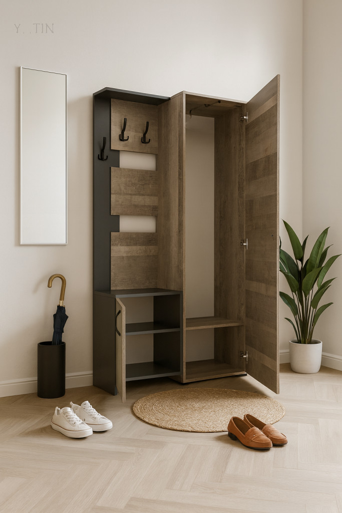 - гардероб с изтеглящ се лост за закачалки