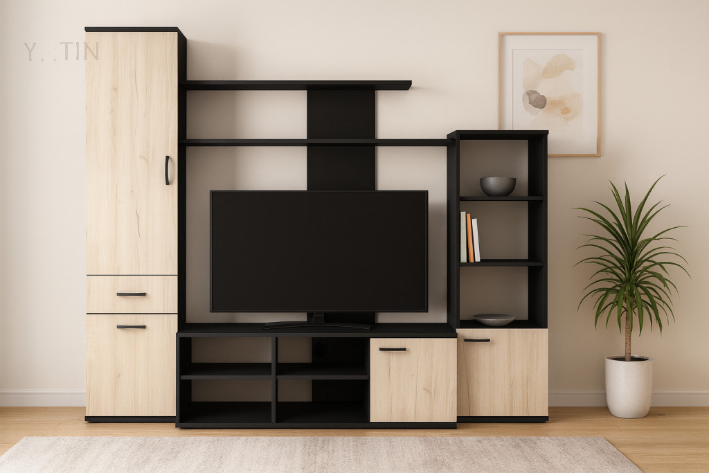 Тя е съчетание от затворени и отворени части с място за телевизор. Фронталната врата е с вградено 4мм стъкло.