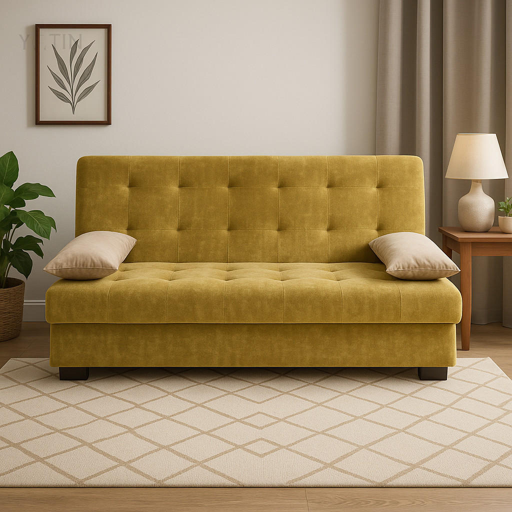 Стилен и модерен диван, който разполага с клик клак механизъм за функция сън. При повдигане на седалната част, под нея се разкрива голяма ракла за съхранение. Това го прави перфектен за всеки дом.